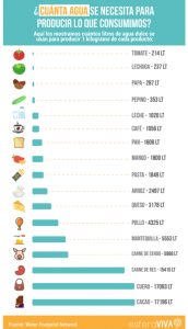 Saps quants litres s’utilitzen per a la producció dels diferents tipus d’aliments?